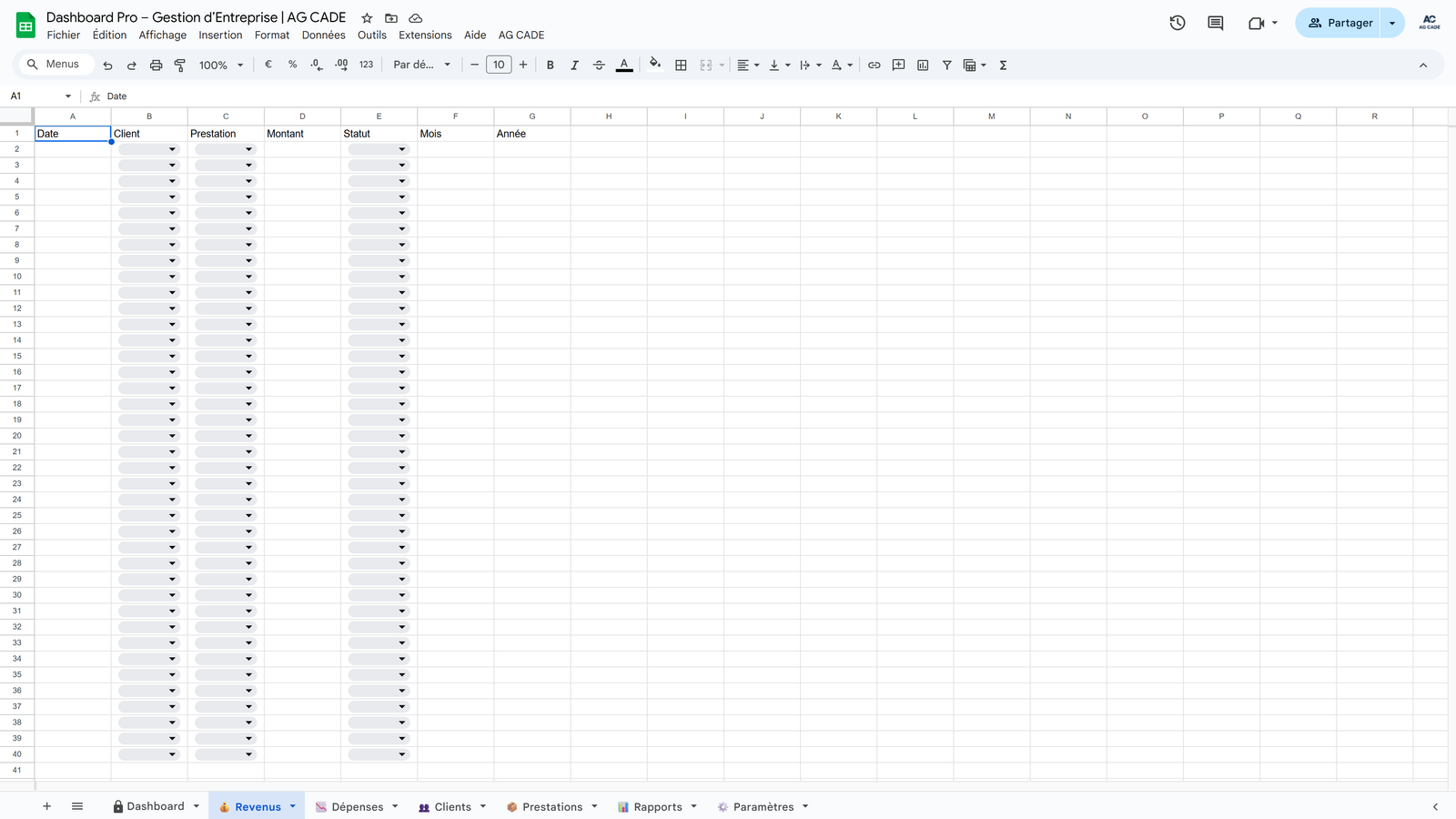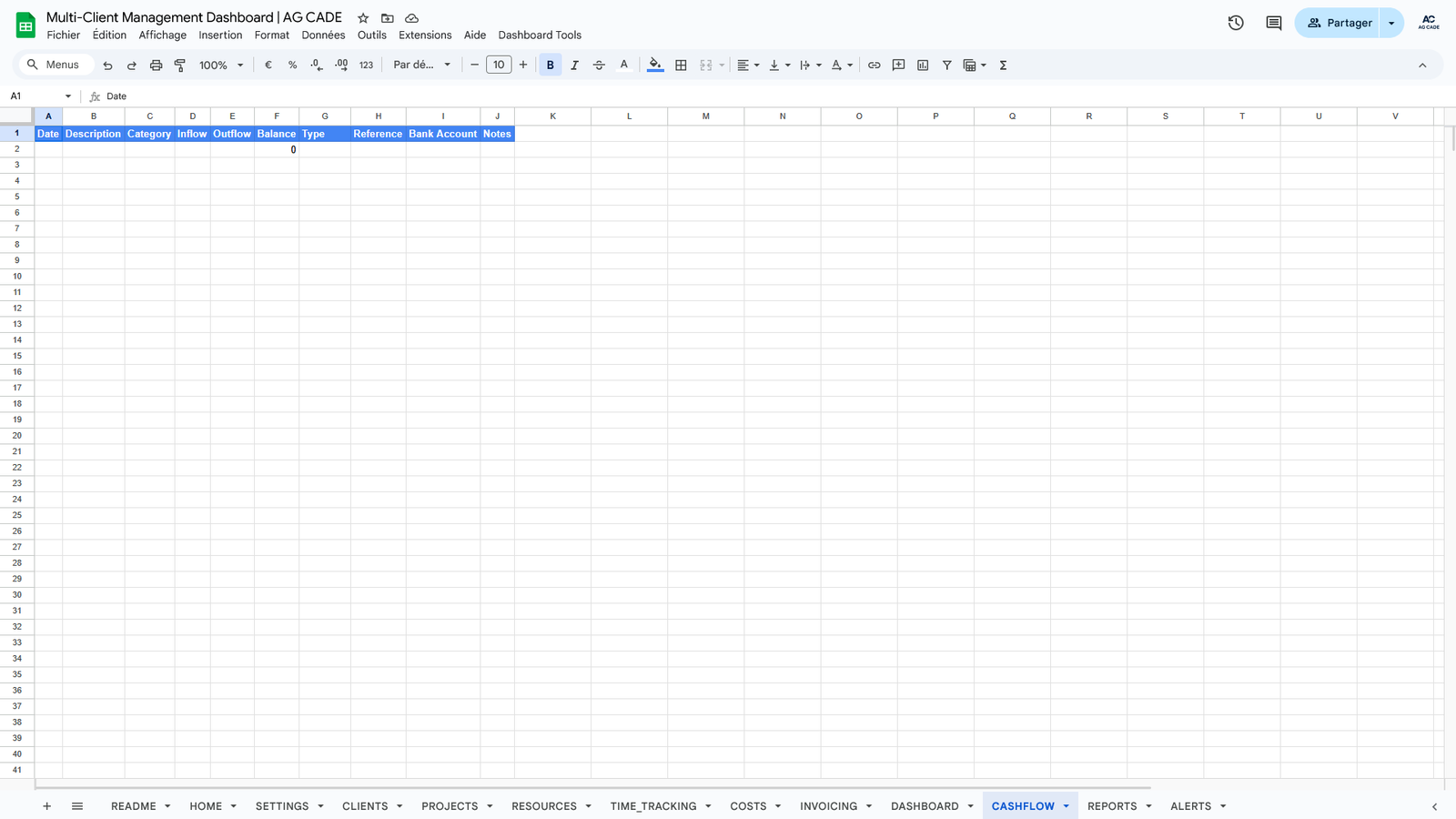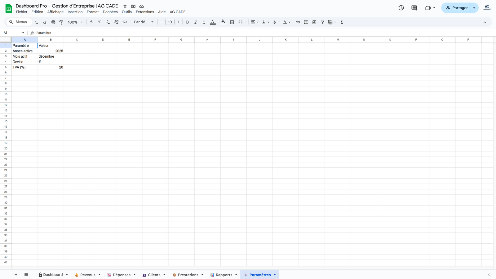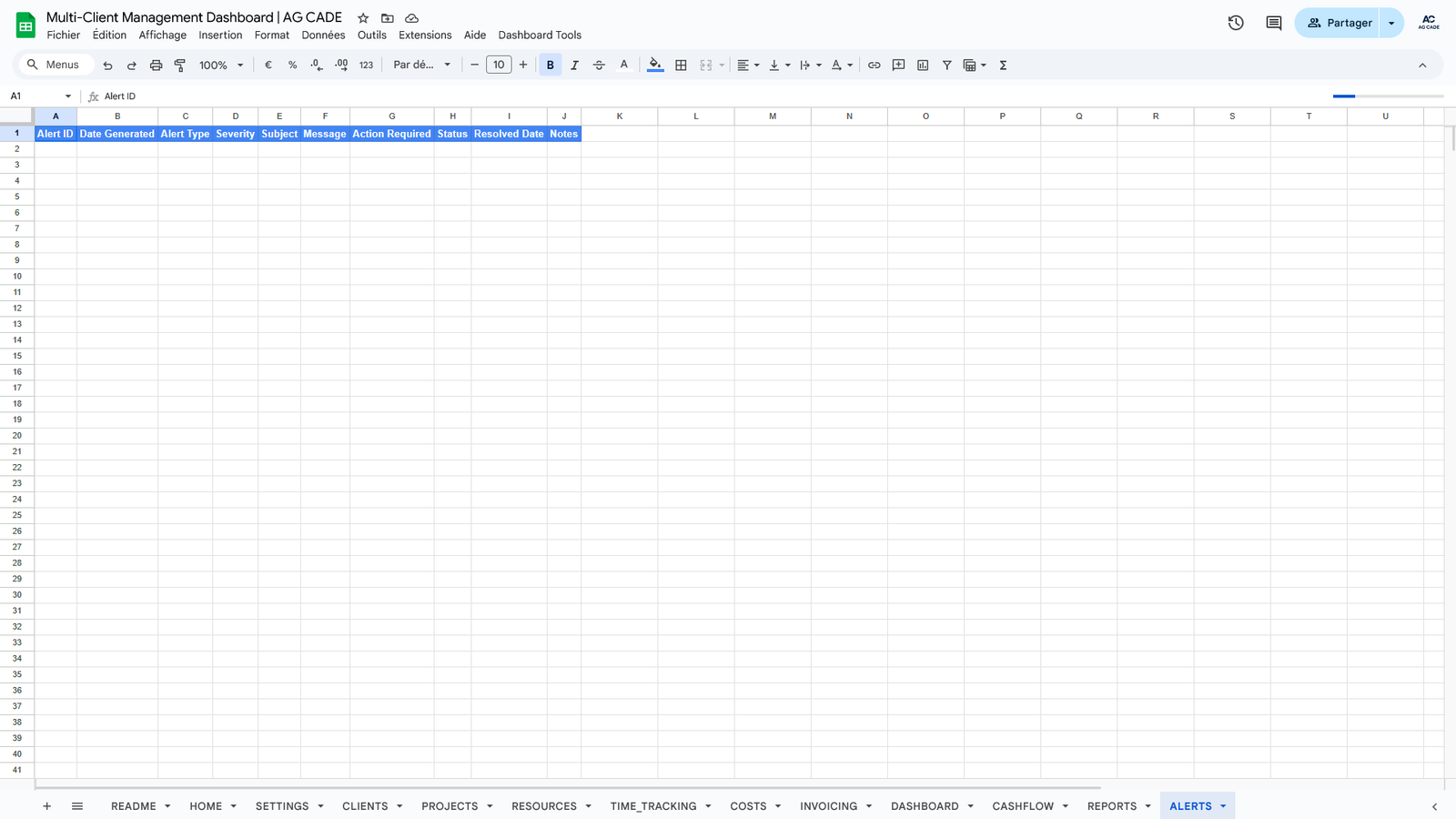 Complete business management system for agencies and consultants. Track clients, projects, time, invoicing, and cash flow - all automated in Google Sheets.