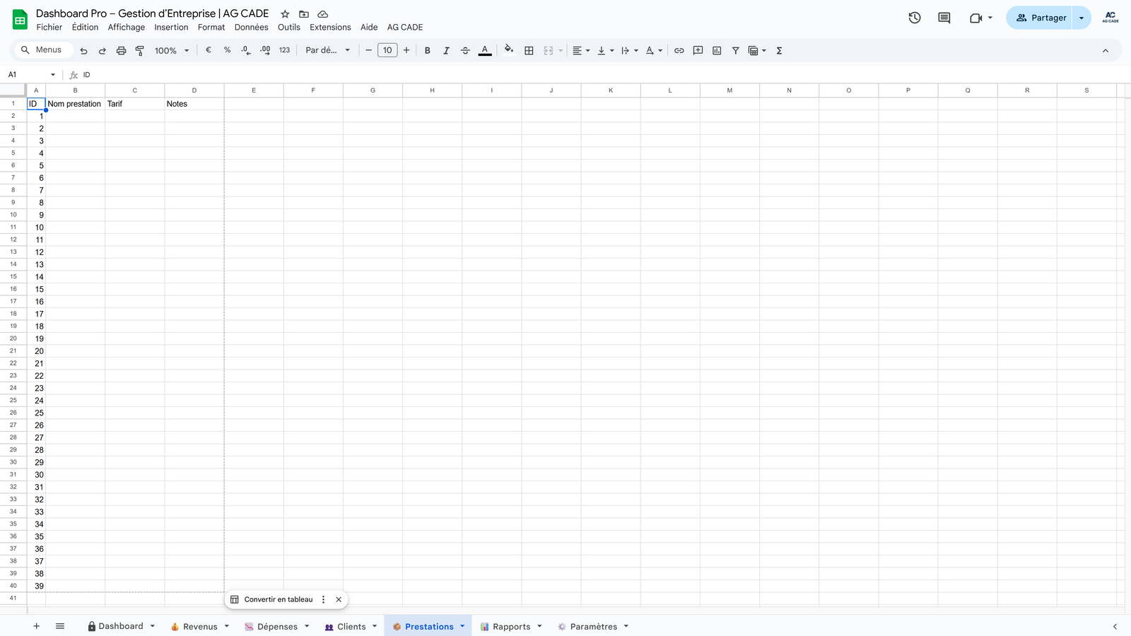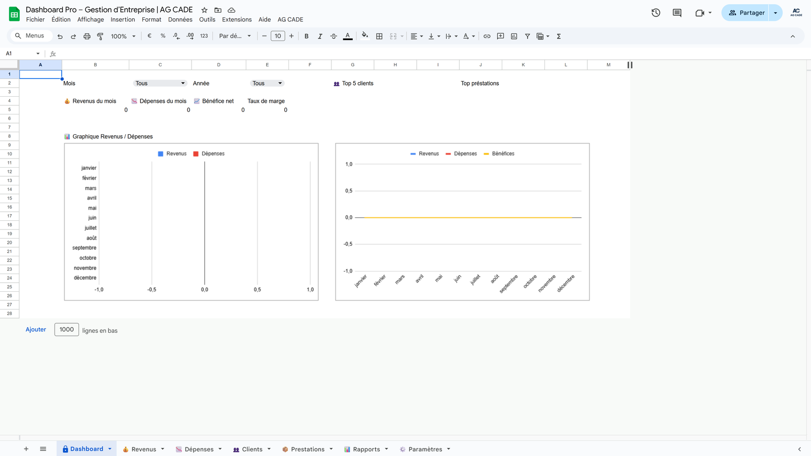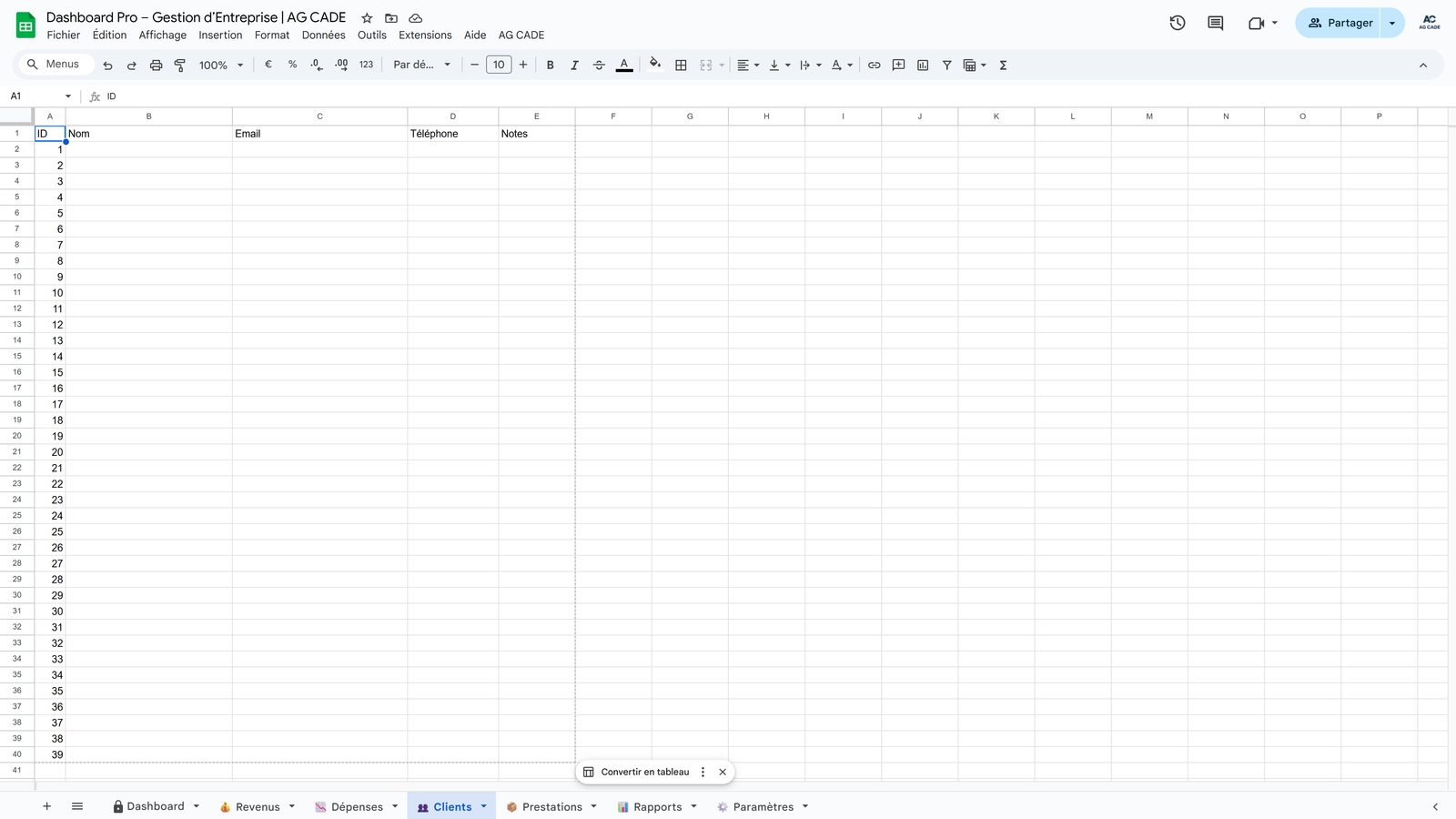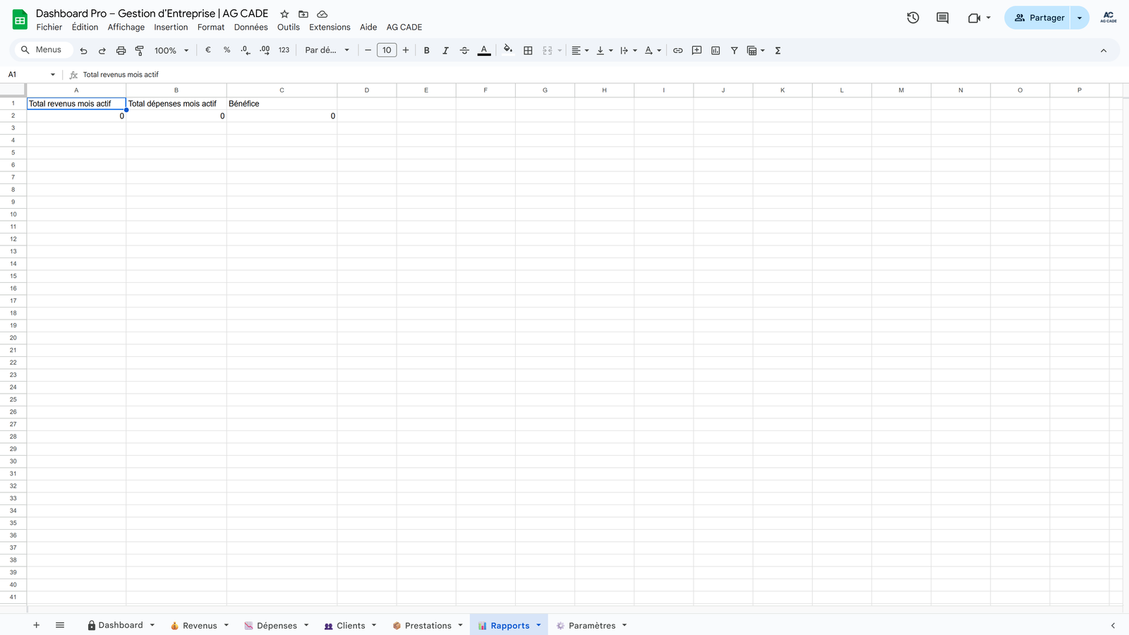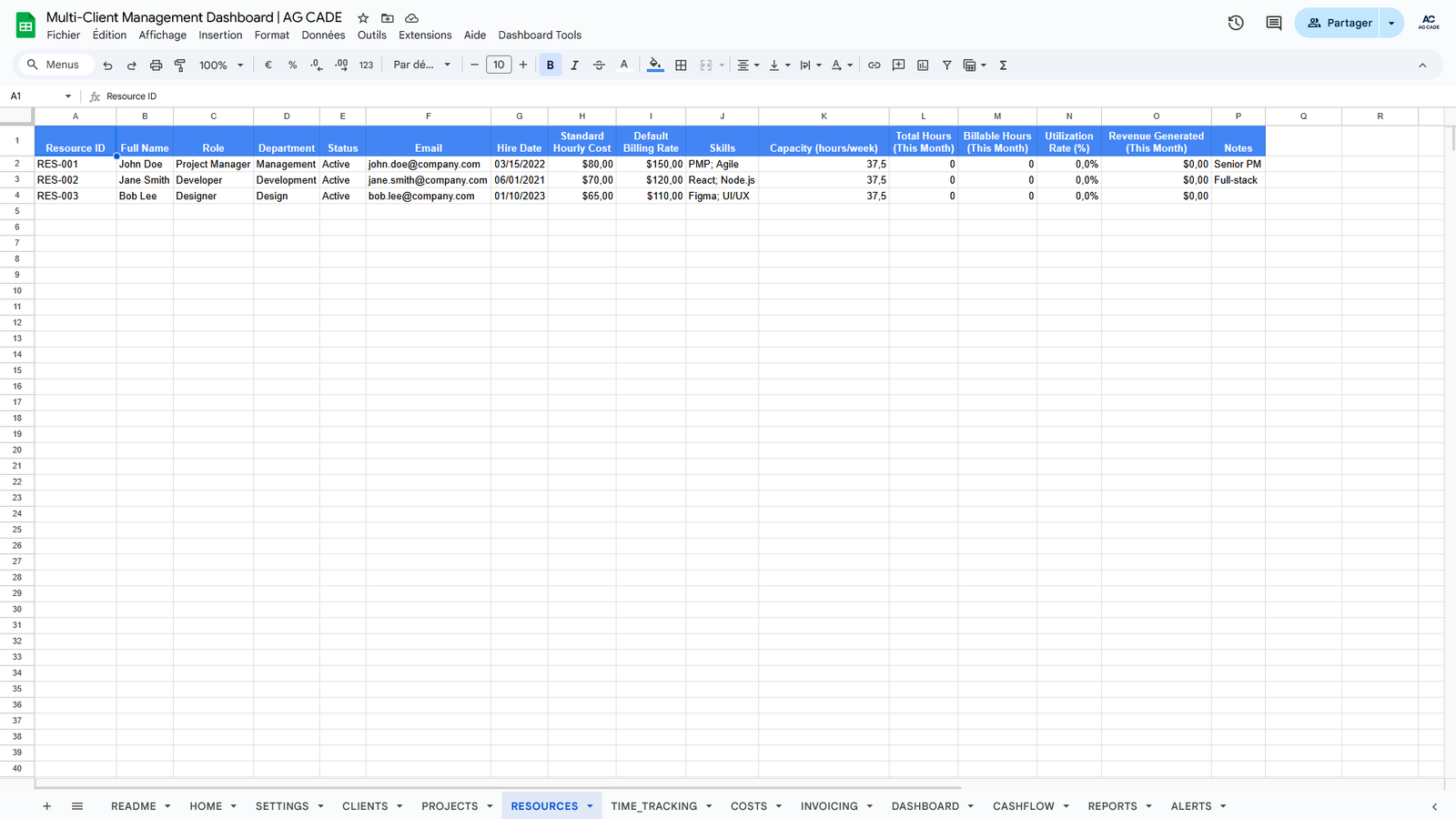 Complete business management system for agencies and consultants. Track clients, projects, time, invoicing, and cash flow - all automated in Google Sheets.