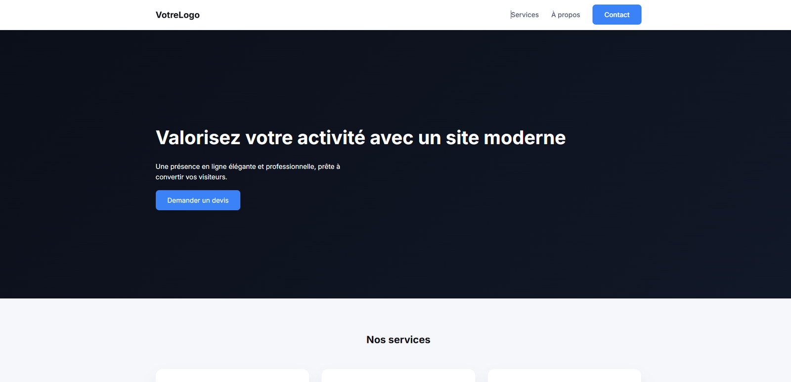 Simple and efficient website template. Ideal for presenting the essentials of your business with a modern design and fast setup.